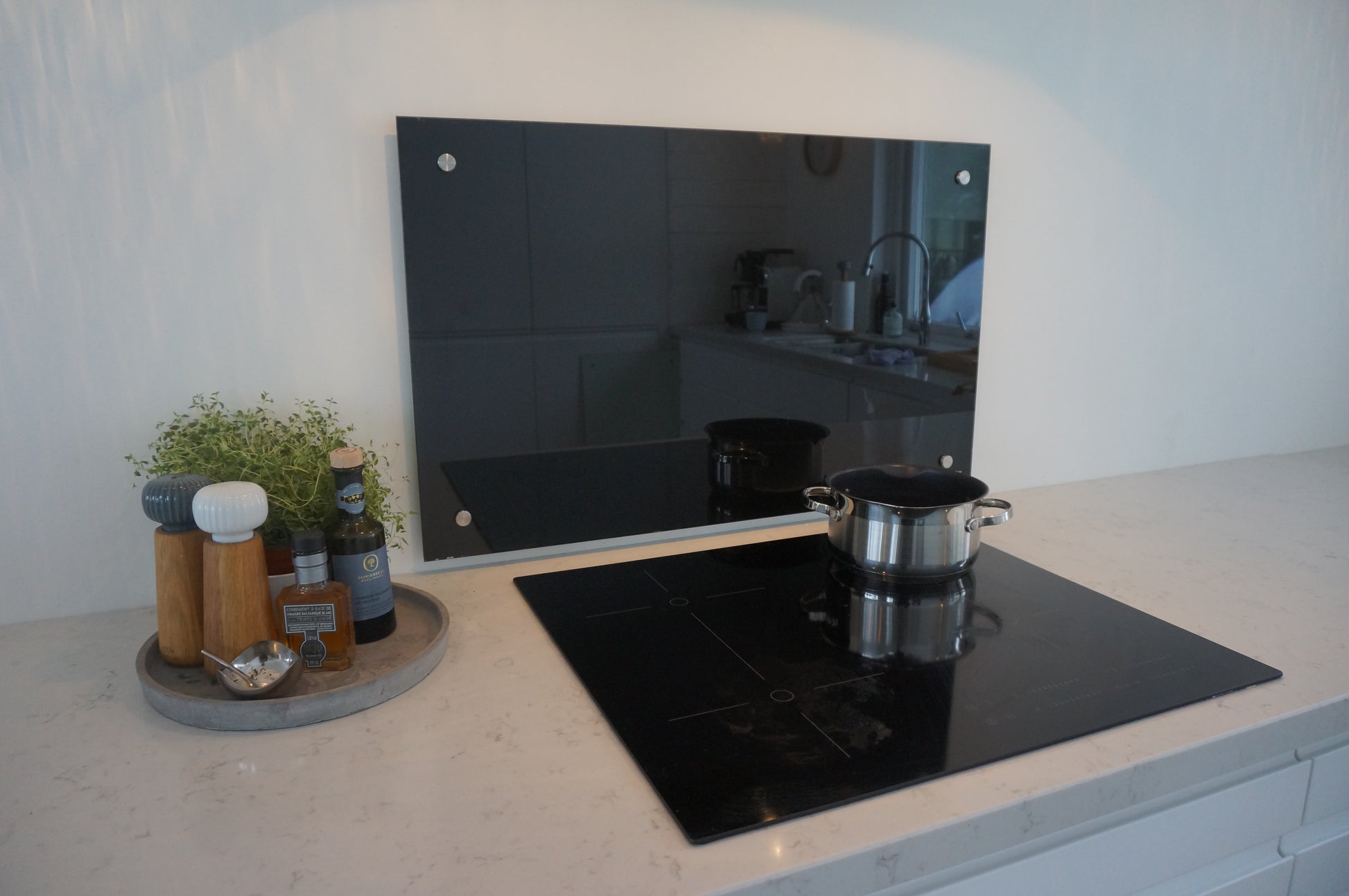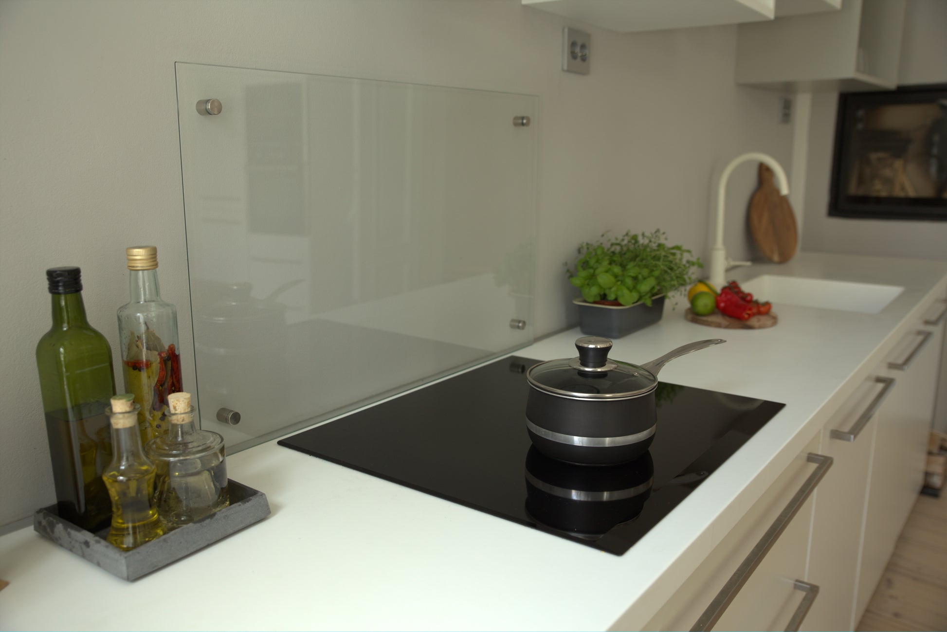 Velger du gå for en løsning i glass er dette både praktisk og ikke minste dekorativt. Klart glass gir et rent uttrykk uten å forringe kjøkkenets design. Ønsker du en annen farge har vi også svart- og hvitlakkerte glassplater i vårt standard sortiment.
