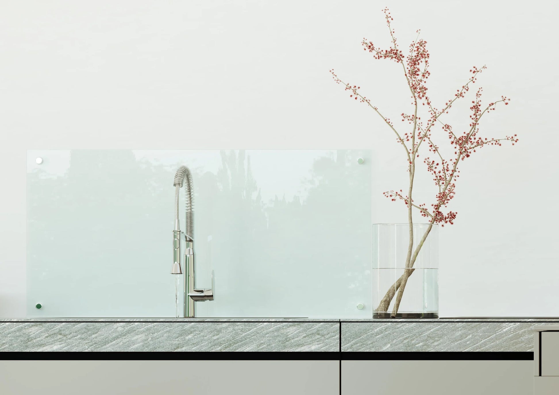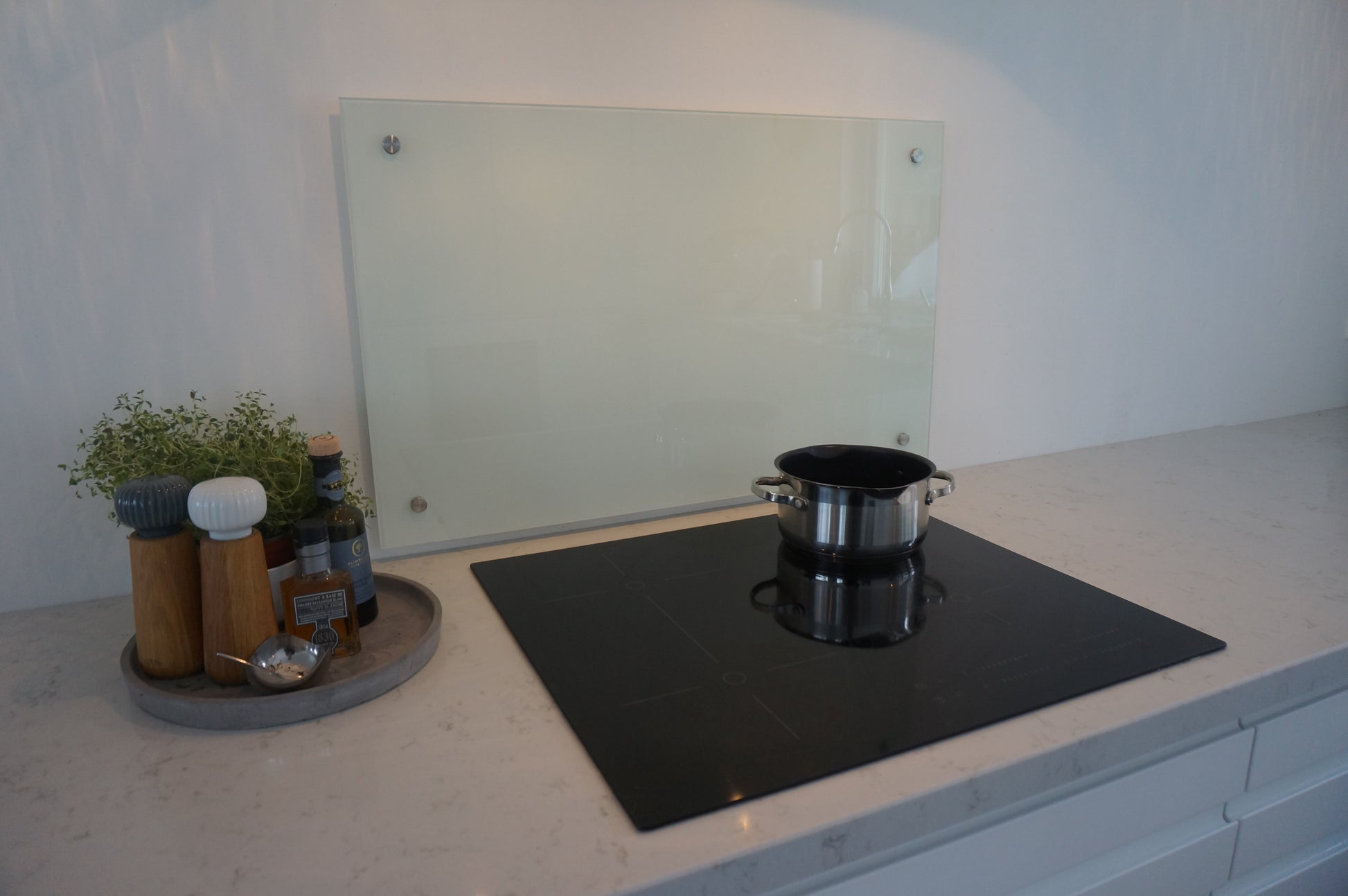 Glassplatene kommer i en standardhøyde på 45cm. Valg av bredden på glassplaten er litt individuelt hva man foretrekker, men vår anbefaling er å ta et mål av din vask/koketopp og velge en bredde som er ca 10cm bredere enn målet du tar. Dermed går den 5cm ut på hver side av koketopp/vask.
